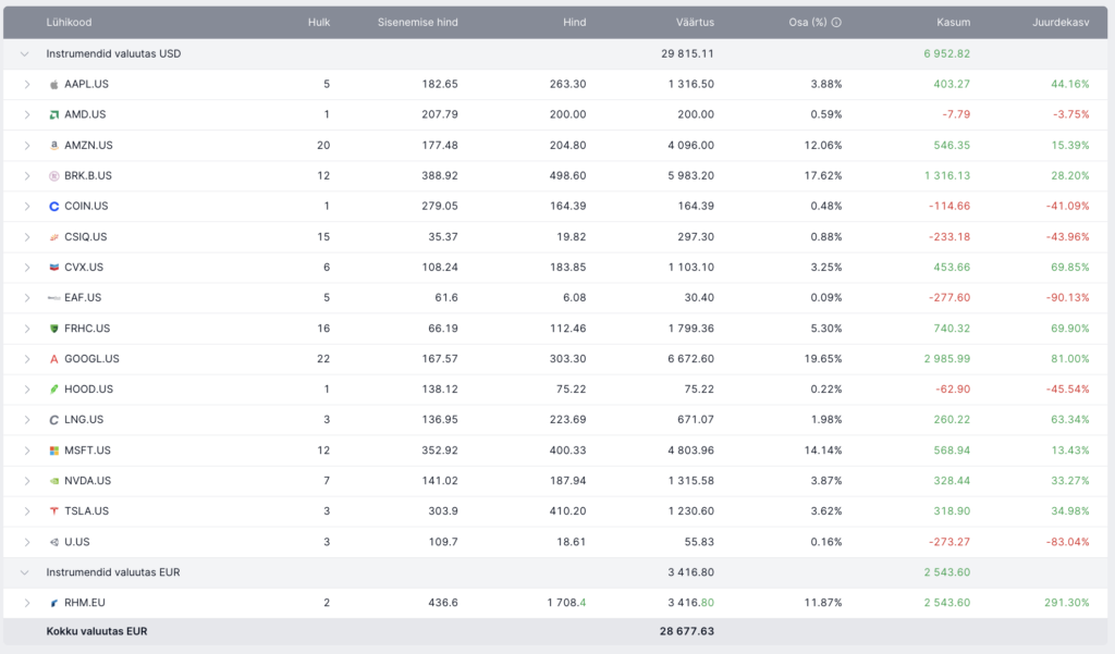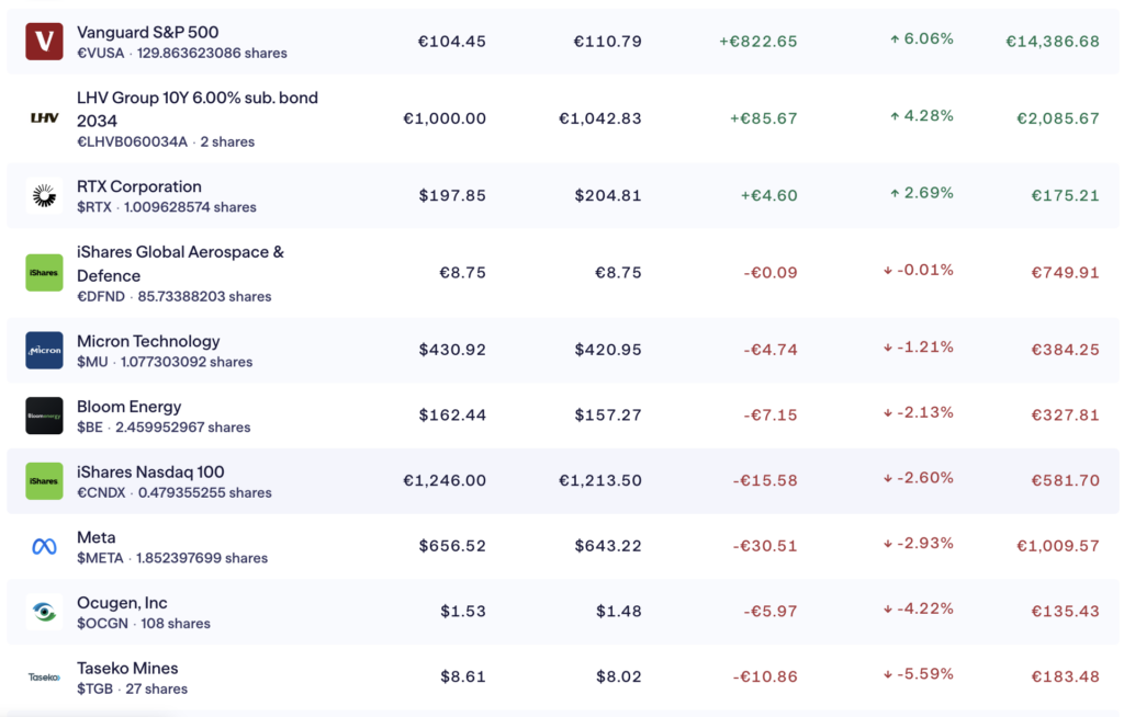 Natuke kommenteerin seda LY pilti ka nagu ikka. Need screenid on tehtud 19.02.2026 seisuga. Palju on punases, sest börs ei ole olnud mulle armuline ja olen rohelisi maha müünud. Punk trading strategy nagu Lev the Legend ütleb: