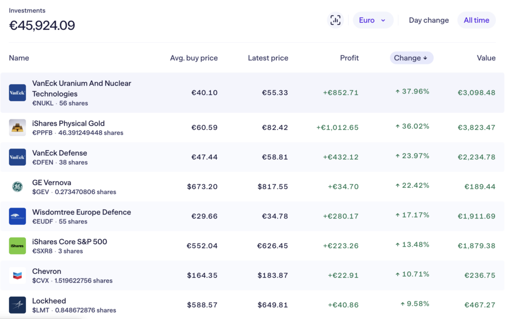 Kõva mees ostabki Ferrari selle papi eest, mis ta Ferrari aktsiaga teinud on. Aga def osas ühtegi soovitust anda ei oska/tohi. Ma enda tehinguid näitan omal insta vip toas ja üks selline on mul ka korvis: VanEck Defense UCITS.